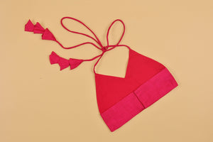 Pink colored silk halter neck choli adorned with mirror lace and dori.
